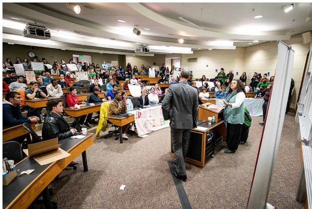 He requested the aid of an administrator, and Tirien Steinbach, Stanford Law’s Associate Dean for Diversity, Equity and Inclusion, took the floor. She reminded him that “For many people here, your work has caused harm,” and clearly delineated her thought process in her March 23 Wall Street Journal op-ed, “Diversity and Free Speech Can Coexist at Stanford.” Steinbach notes that “striv[ing] for authentic free speech” meant both supporting SLS’ decision not to cancel the event and allowing students to protest the event: